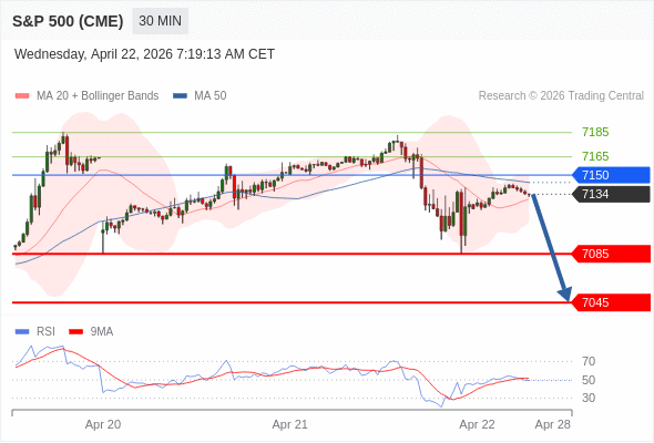 在 7150 之下,看跌,目标价位为 7085 ,然后为 7045 。