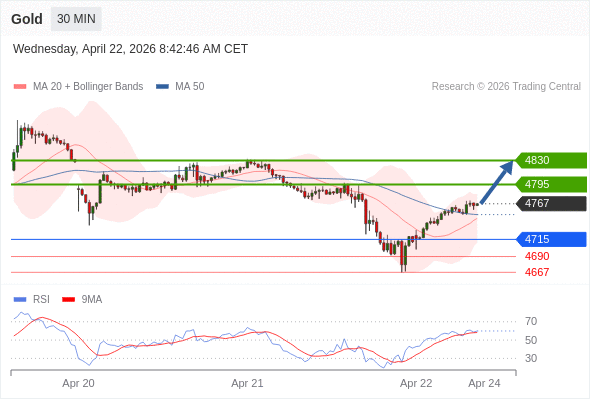 在 4715 之上,看涨,目标价位为 4795 ,然后为 4830 。