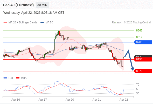 在 8280 之下,看跌,目标价位为 8155 ,然后为 8070 。