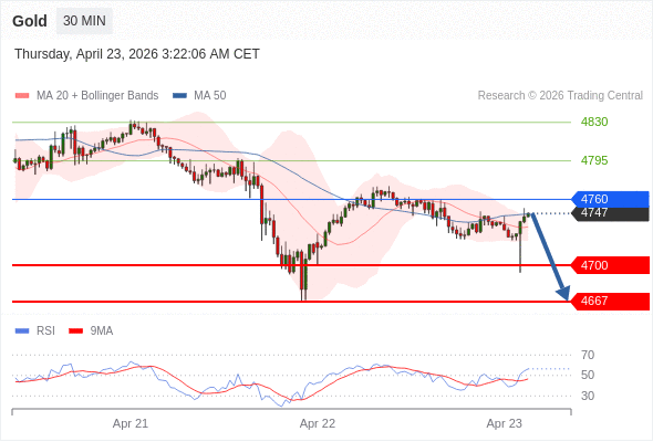 在 4760 之下,看跌,目标价位为 4700 ,然后为 4667 。