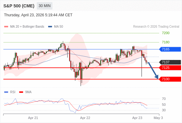 在 7165 之下,看跌,目标价位为 7125 ,然后为 7100 。