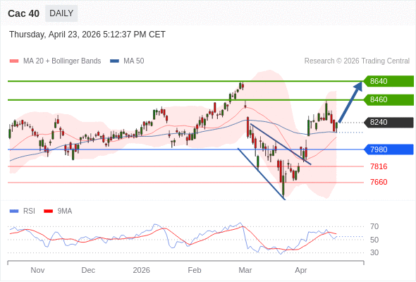 Cac 40 短线: 没有明显变化趋势。