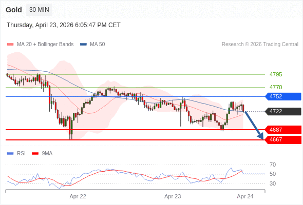 在 4752 之下,看跌,目标价位为 4687 ,然后为 4667 。