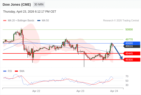 在 49680 之下,看跌,目标价位为 49445 ,然后为 49300 。