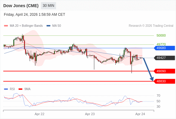 在 49680 之下,看跌,目标价位为 49090 ,然后为 48830 。