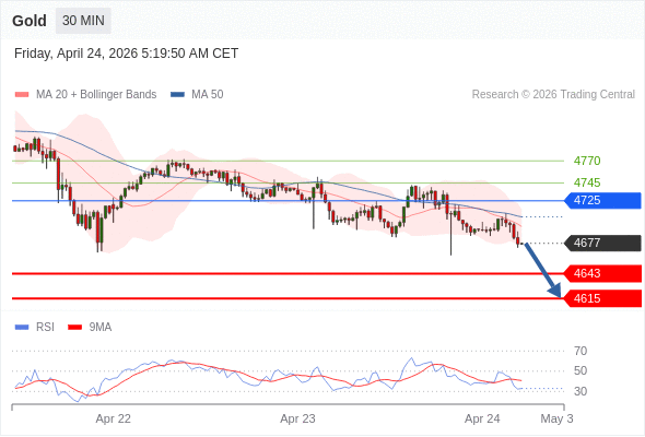 在 4725 之下,看跌,目标价位为 4643 ,然后为 4615 。