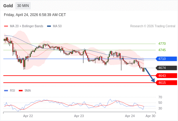 在 4710 之下,看跌,目标价位为 4643 ,然后为 4615 。