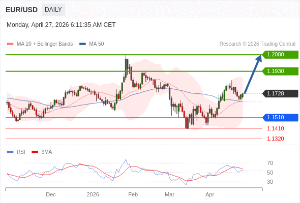 在 1.1510 之上,看涨,目标价位为 1.1930 ,然后为 1.2080 。