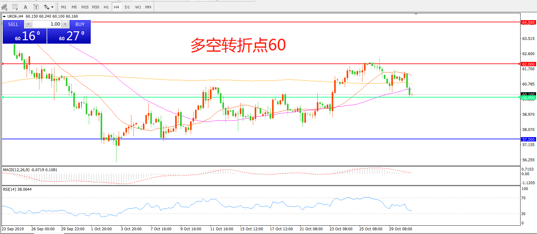 多空转折点:60.00