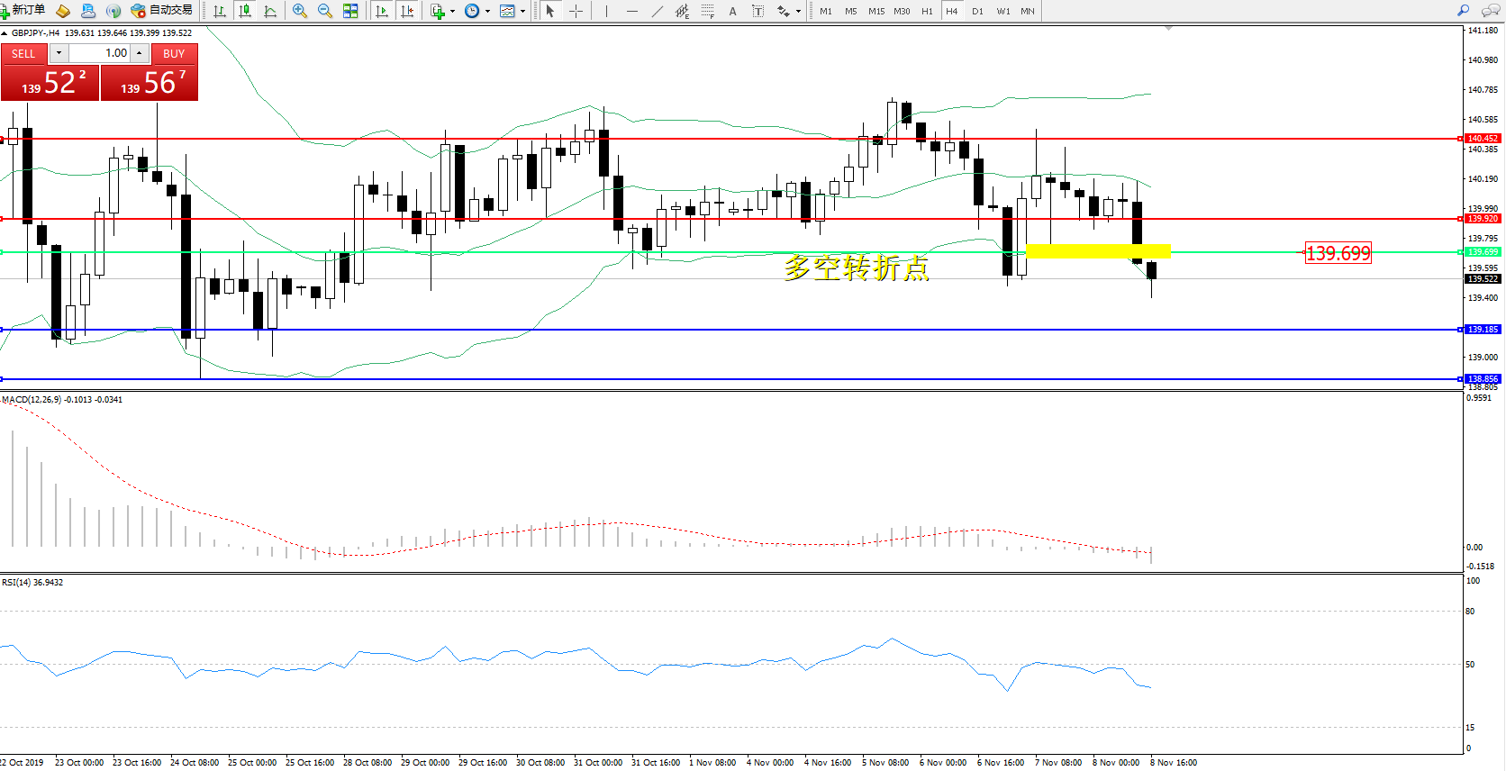 交易策略:139.699下方看跌,目标139.185、138.856