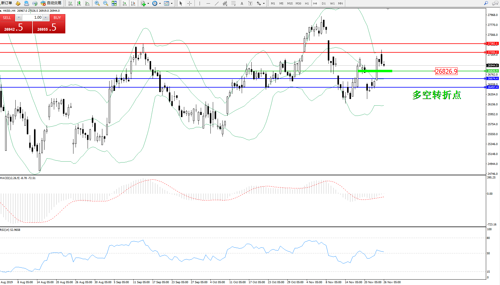 交易策略:26826上方看涨,目标27205、27382