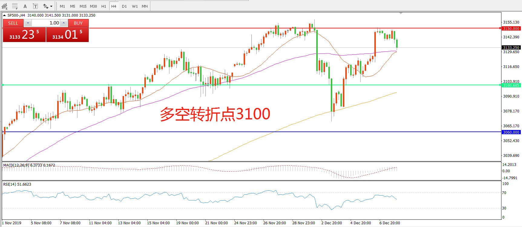 多空转折点:3100.00