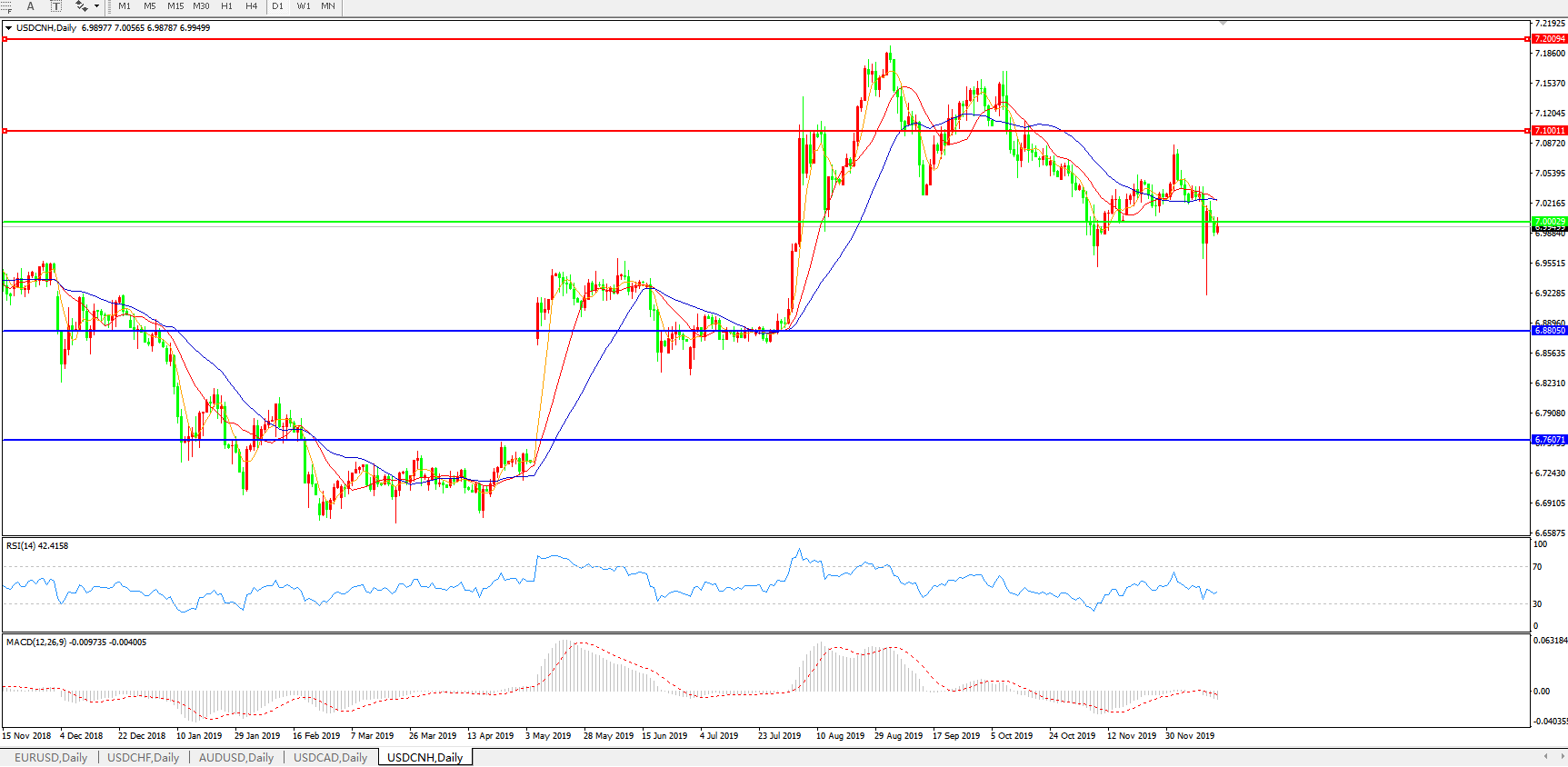 美元兑人民币USDCNH 日线图: