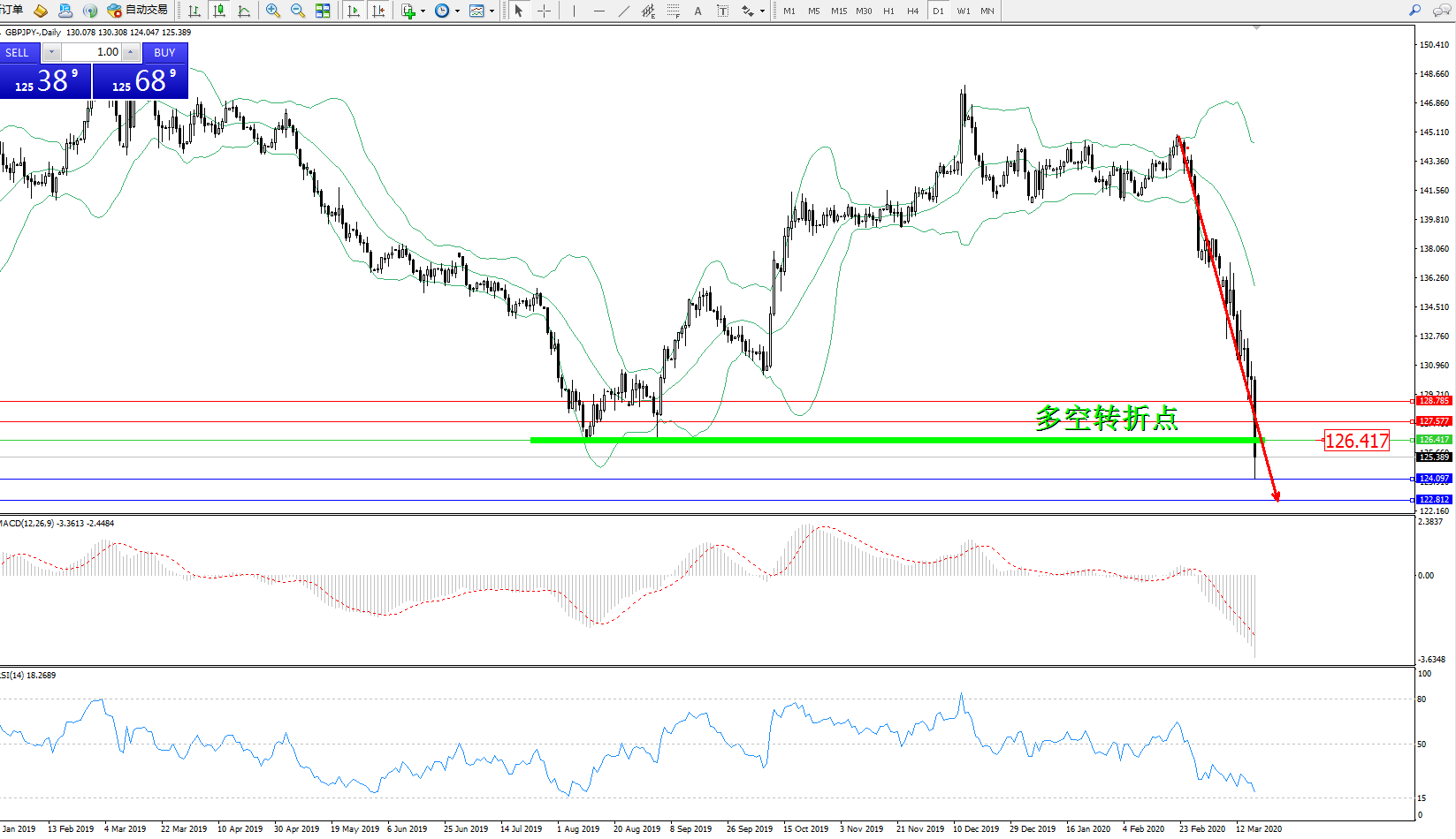 交易策略:126.417下方看跌,目标124.097122.812