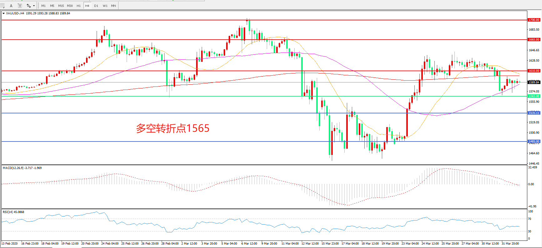 多空转折点:1565.00