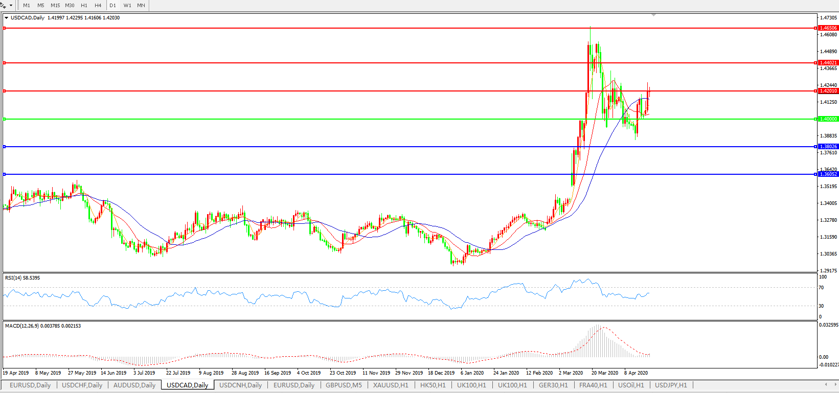 美元兑加元USDCAD    日线图: