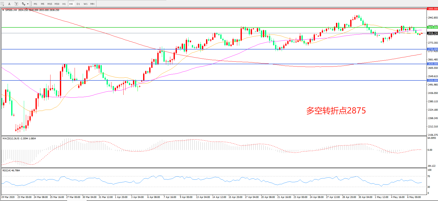 多空转折点:2875.00