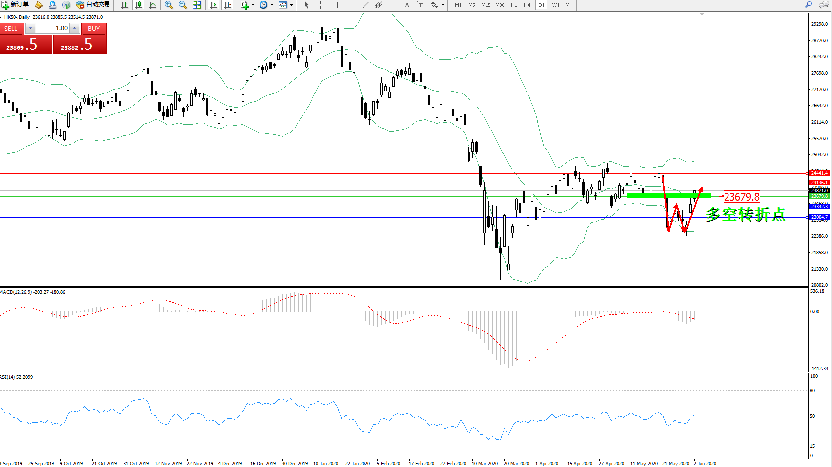 香港恒生指数62日(周二)收盘上涨263.42点,涨幅1.11%,报23995.94点;连续三日反弹,港股三大指数均收涨,大市成交量为1084.67亿港元,南下资金净流入15.5亿港元。风电股板块领衔上涨,华电福新获提私有化飙涨60%,带动大唐新能源、龙源电力走高;医疗设备股、香港零售股皆现普涨行情,国美零售大涨19%,创维集团涨7%;电信股、建材水泥股跌幅明显,中国电信跌超3%。恒指国指成份股大多上涨,港交所涨近2%股价逼近历史新高。 港股预托证券个别发展,预料大市早段缺乏方向。内地上月采购经理指数表现向好,加强市场对内地经济前景信心。港股急剧反弹,蓝筹股近乎全线上升,指数突破多条移动平均线水平,大市成交保持畅旺。