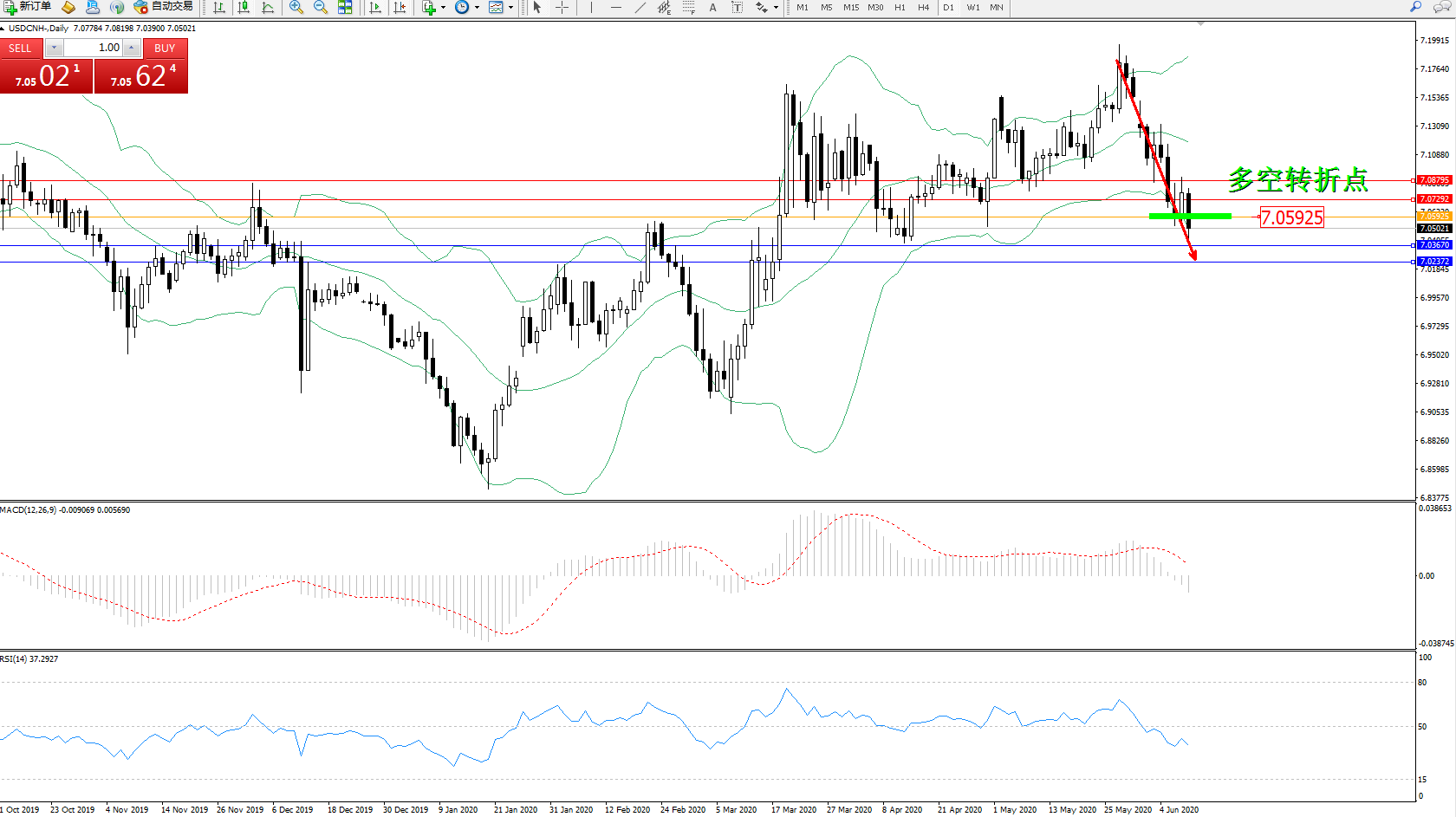 交易策略:7.05925下方看跌,目标7.036707.02372