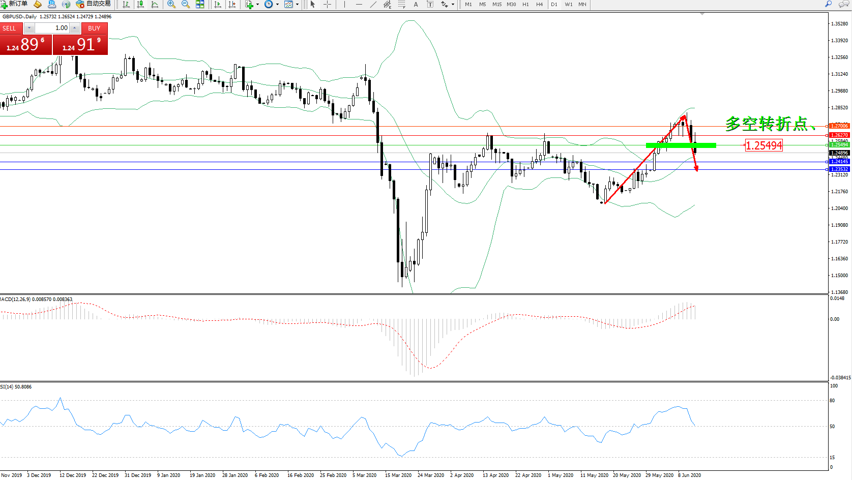 交易策略:1.25494下方看跌,目标1.241451.23532