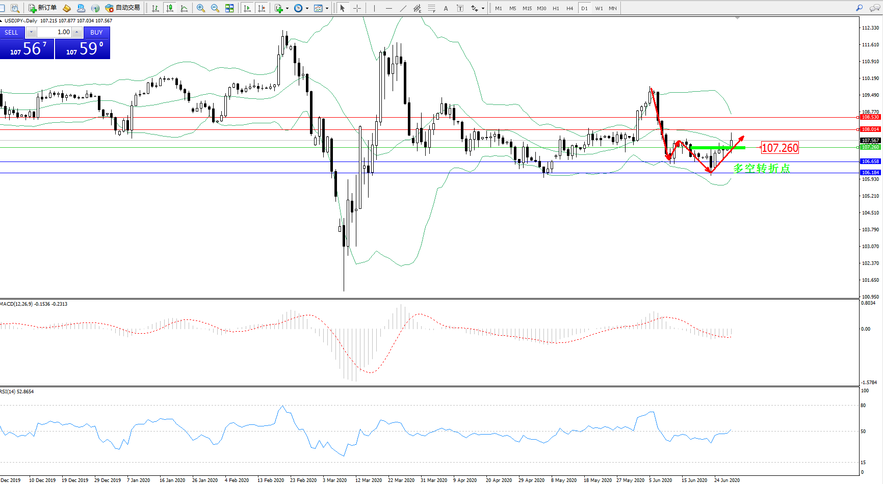 多空转折点:107.260