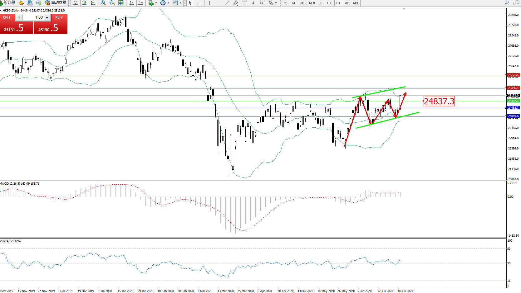 恒指HK50 ——日K线图显示: