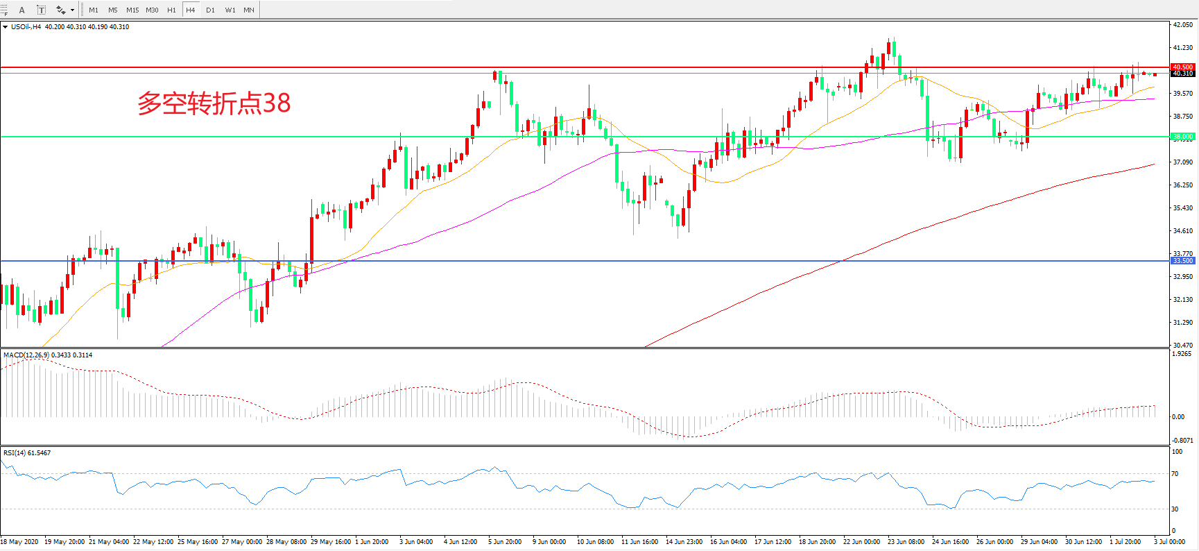 交易策略:在38.00之上看涨,目标40.50 43.50