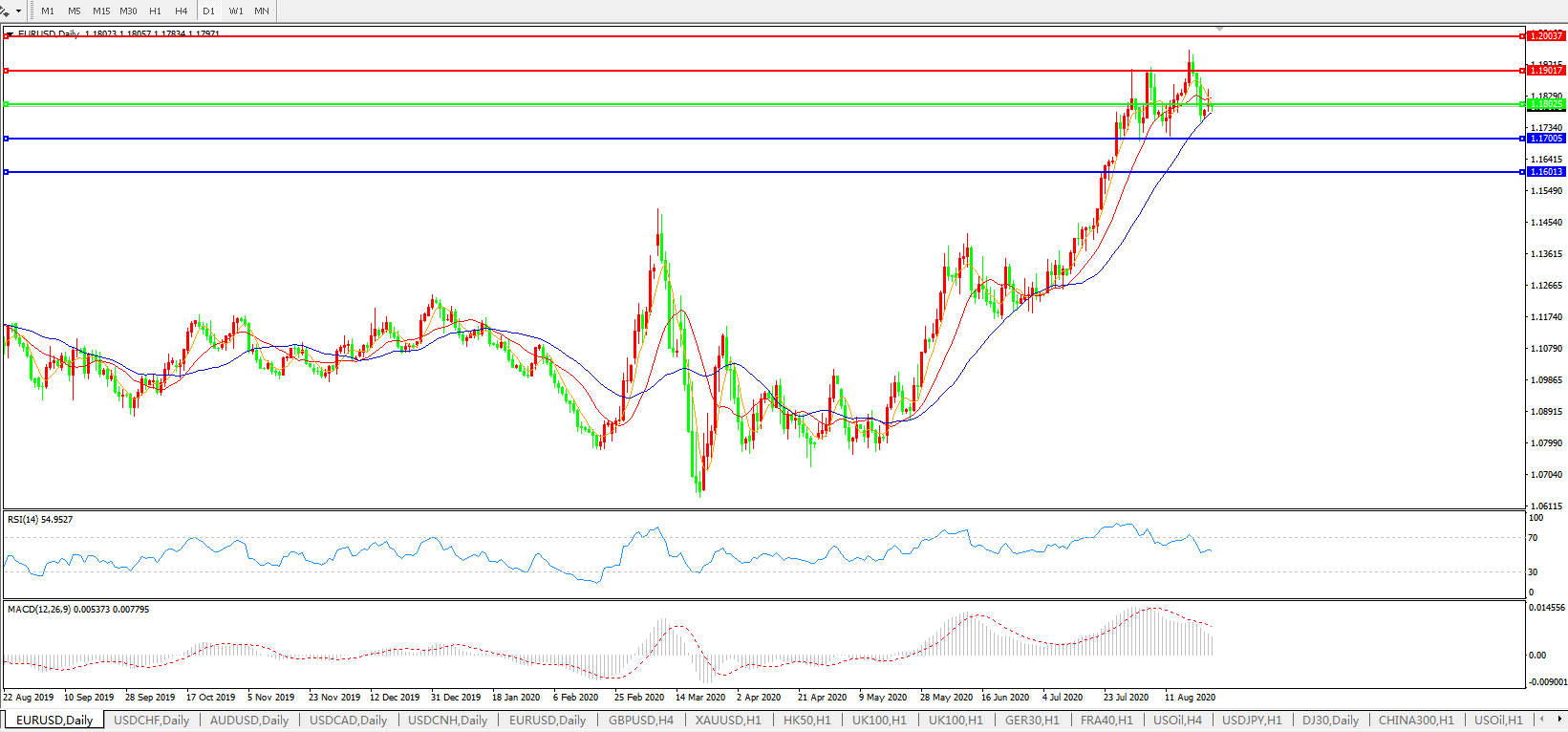 交易策略:1.1800下方看跌,目标1.1700、1.1600