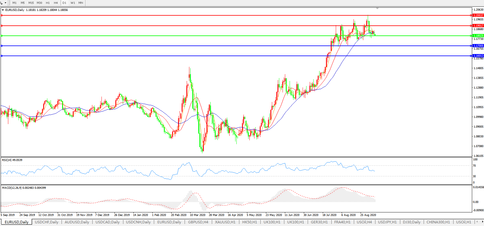 交易策略:1.1800上方看涨,目标1.1900、1.2000