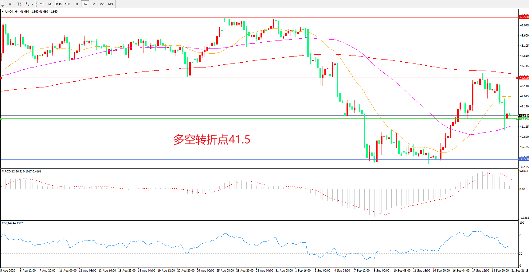 交易策略:   在41.50之上看涨,目标43.50      46.50