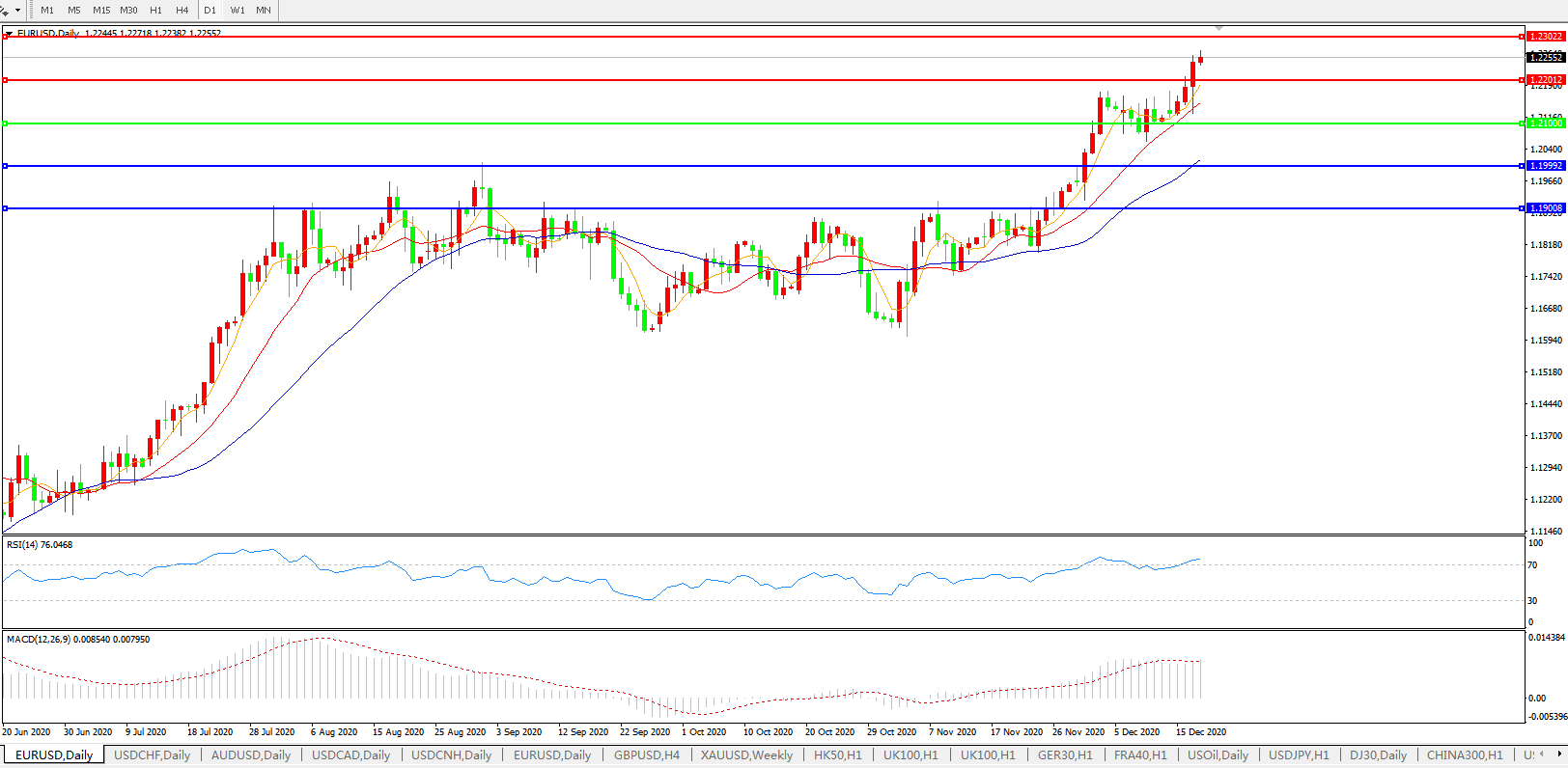 技术面简析:日图均线呈有序多头排列,汇价继续上攻,MACD运行于0轴上方且量能0轴上再度放量 ,RSI有缓步走升迹象,预计短期汇价大概率将进一步上行。