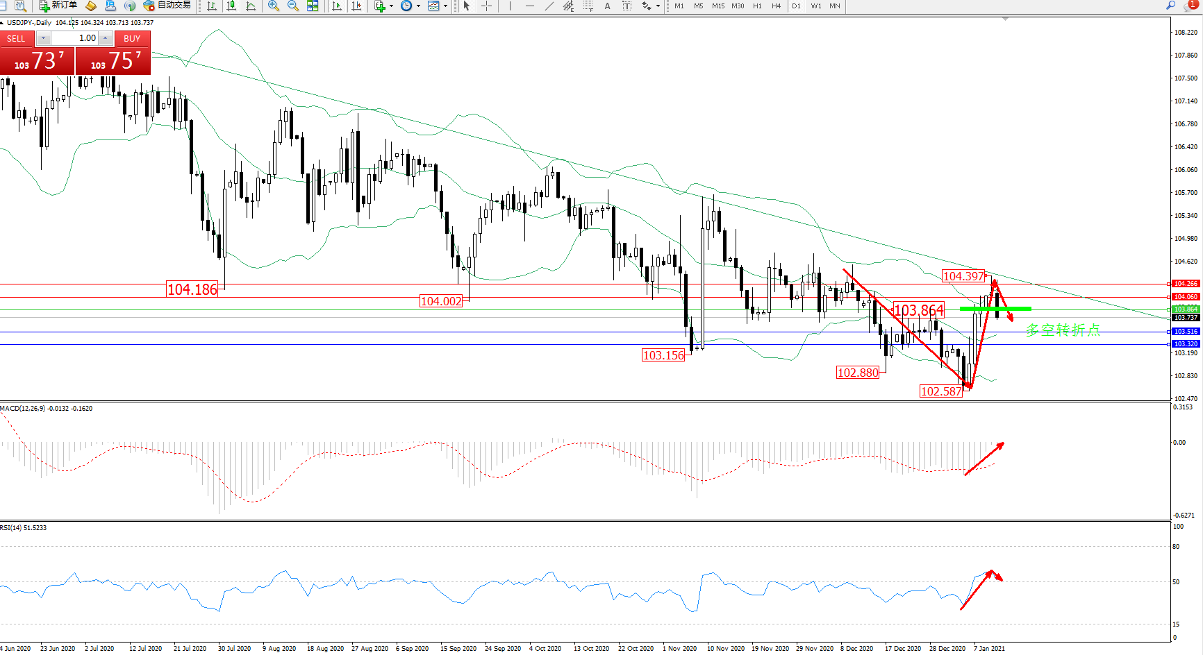多空转折点:103.864