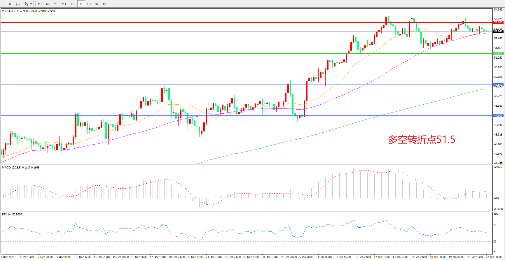 交易策略:在51.50之上看涨,目标53.50 57.00