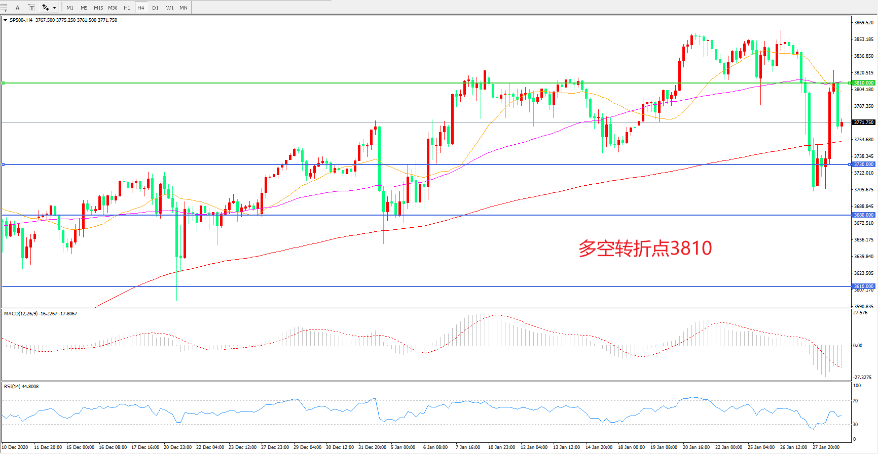 多空转折点:3810.00