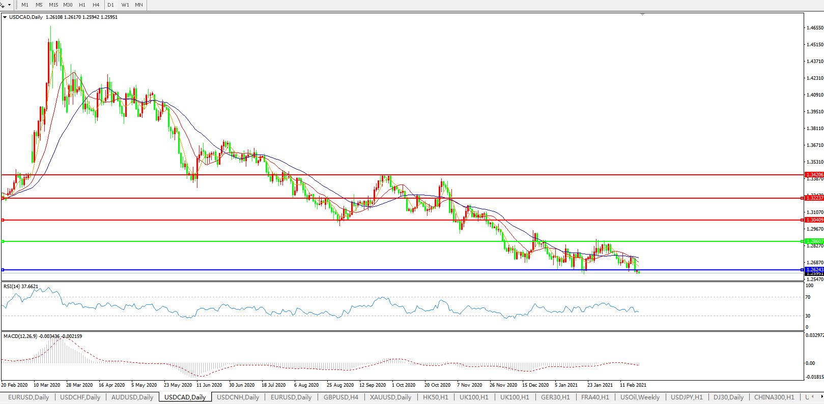 美元兑加元USDCAD 日线图: