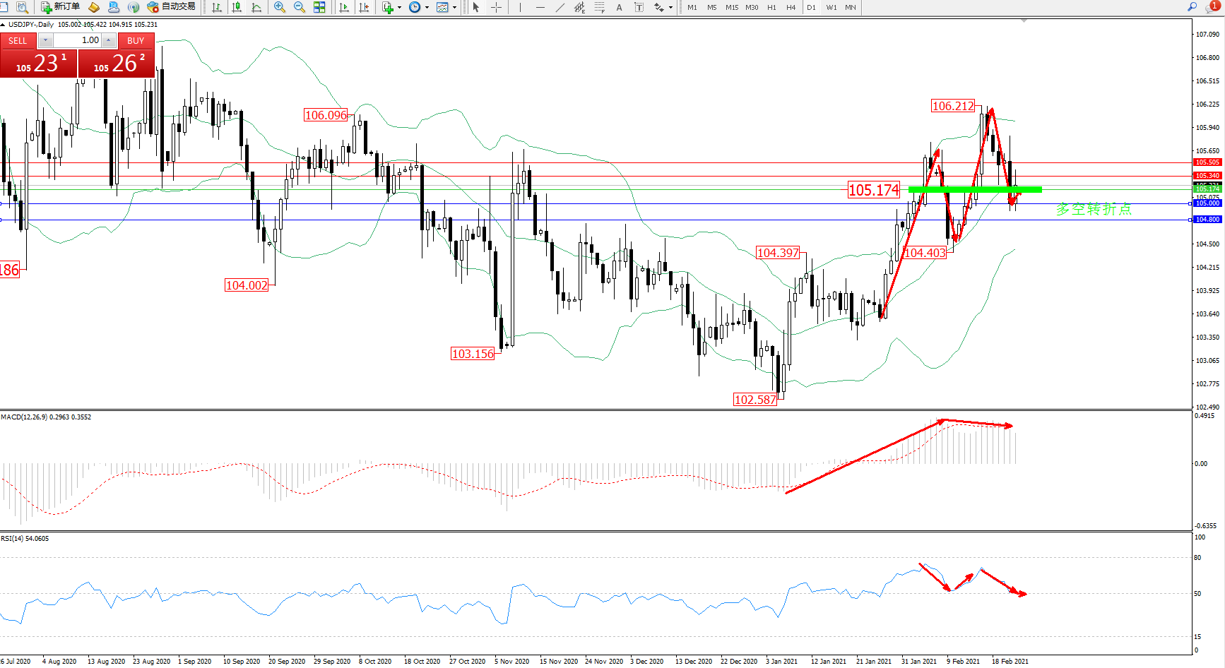 多空转折点:105.174