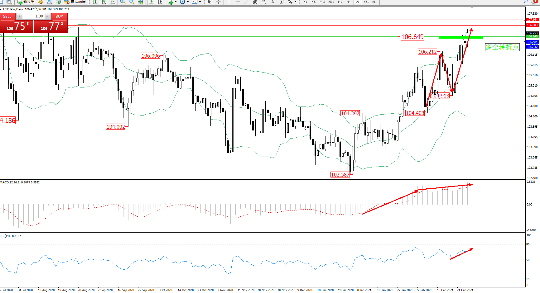 多空转折点:106.649