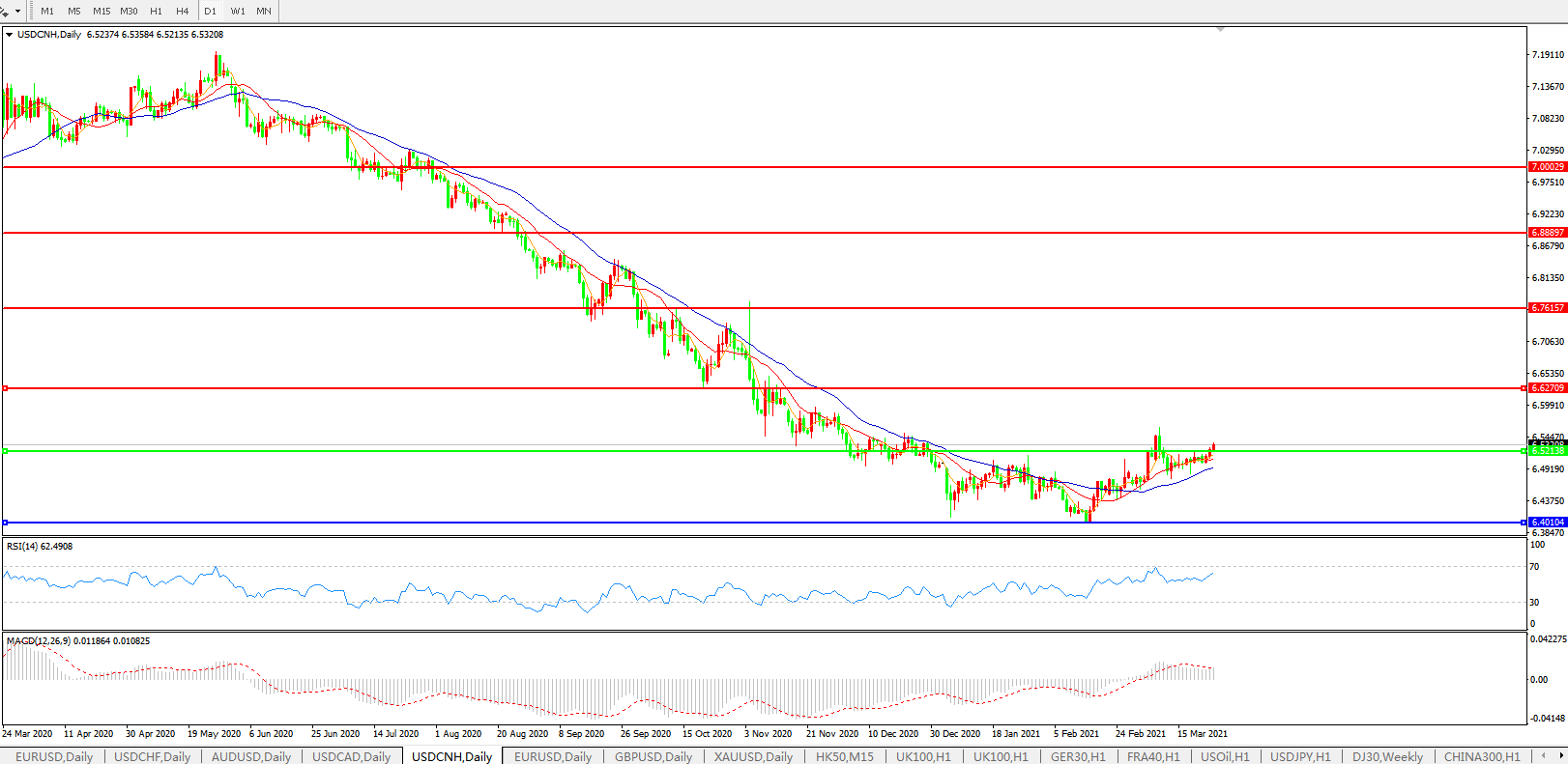 交易策略: 在6.5200之上,看涨,目标价位为6.6300,然后为6.7615。