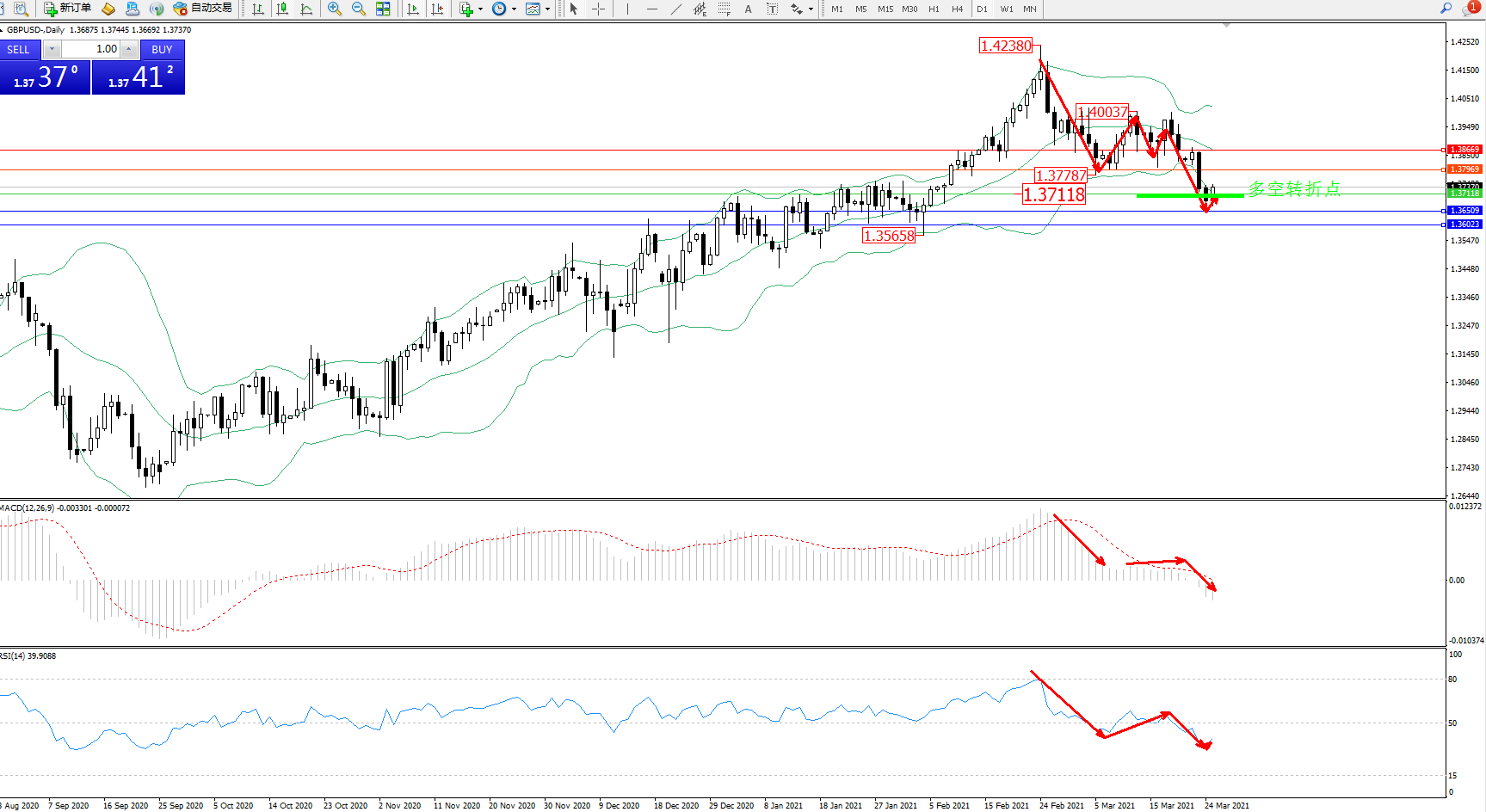 备选策略:1.37118下方看跌,目标1.36509、1.36023