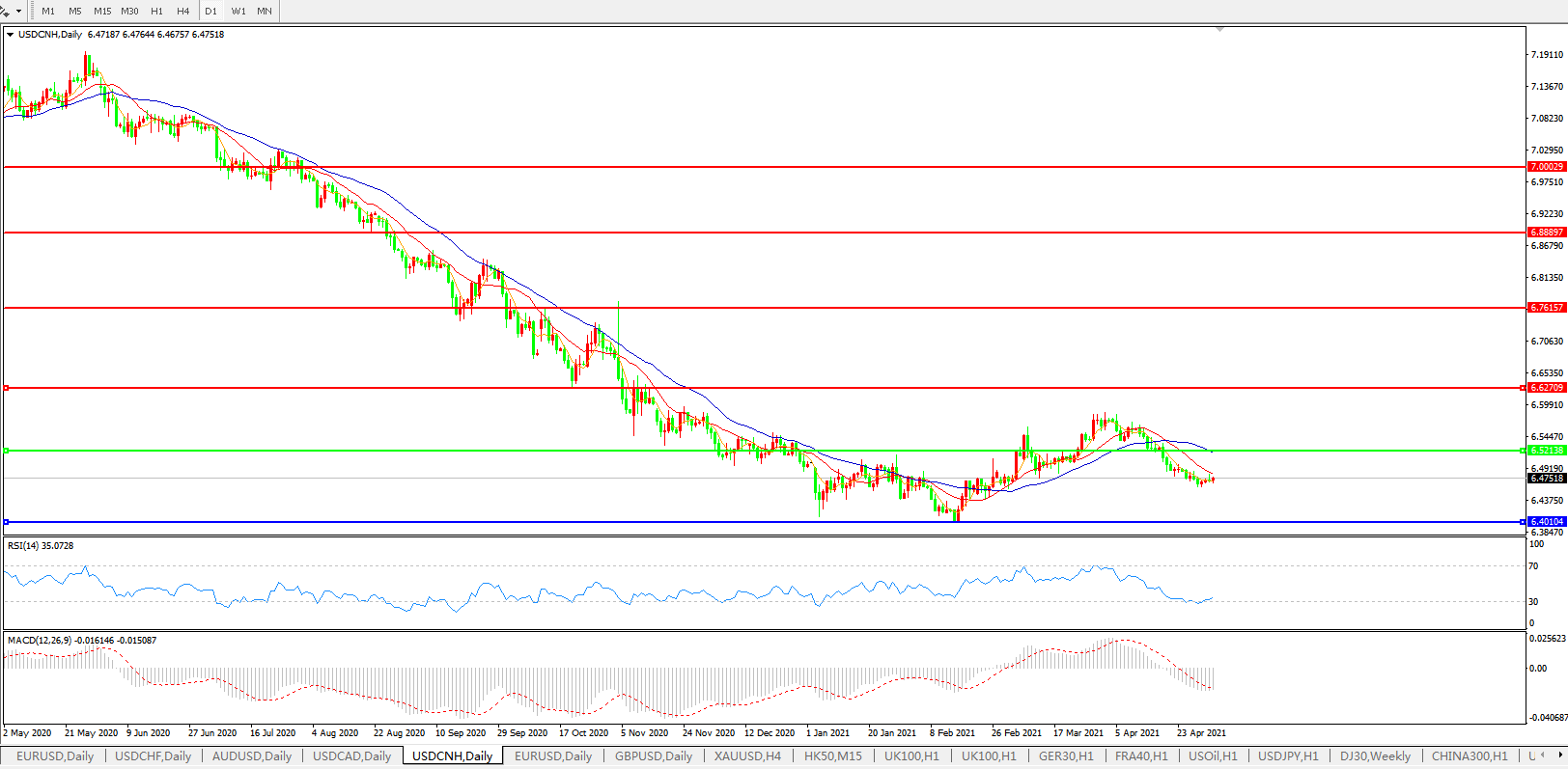 备选策略:在6.5200之上,看涨,目标价位为6.6270,然后为6.7615。