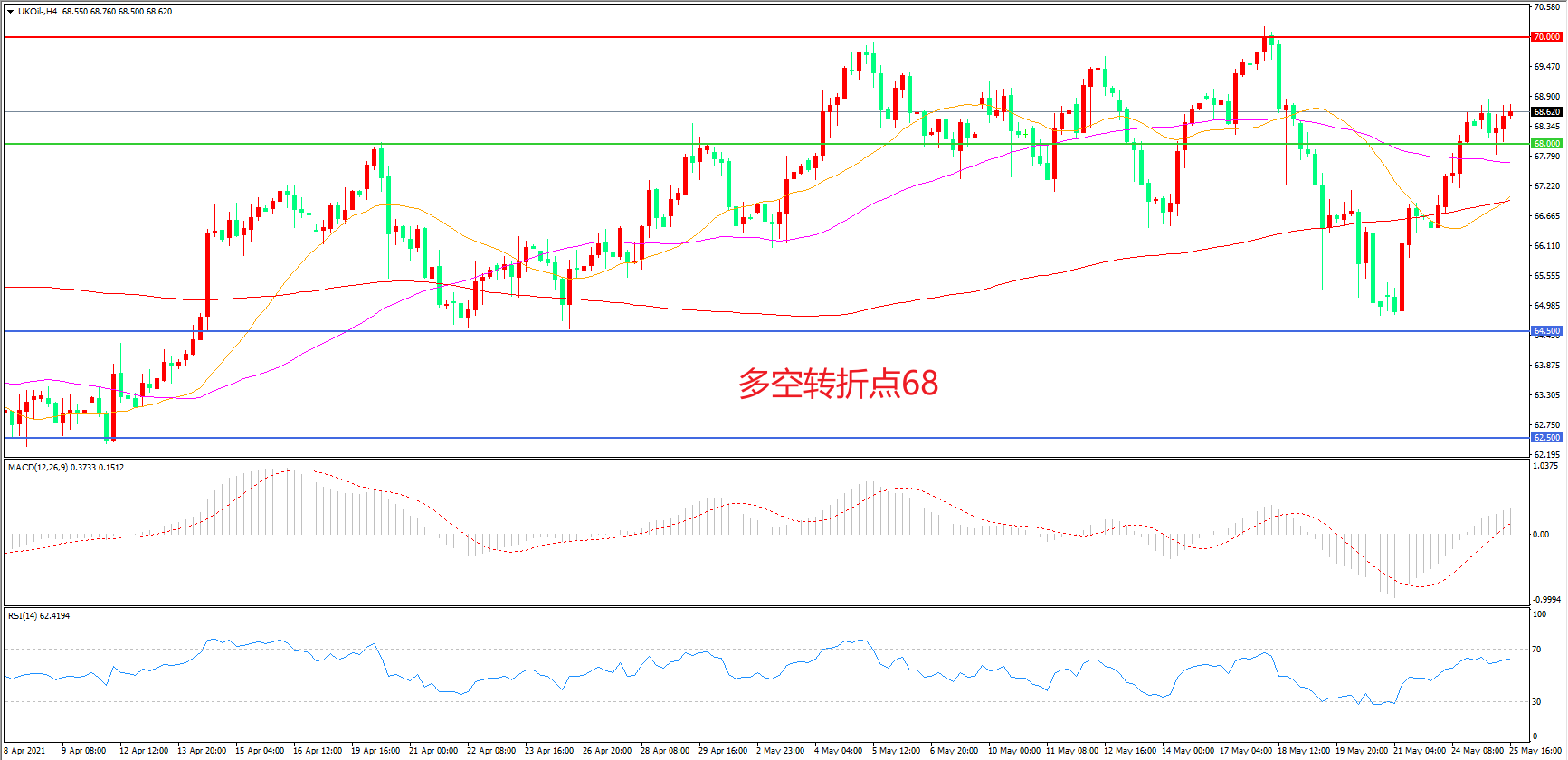 周二(5月25日),美元指数在美联储官员重申保持宽松的信号后进一步下跌,给原油价格形成了一定的支撑,不过市场明显在此位置悬停,等待伊核协议的最终结果。布伦特原油延续高位震荡,收报68.62美元/桶。由于经济恢复仍在进行,美联储此时并不敢大幅的收缩资产购买计划。即便是通胀率飙升,美联储也不敢承认通胀真正的到来,只能以暂时性的说辞来安抚市场。市场也明白美联储言辞背后的含义,因此美元指数不断走低,
