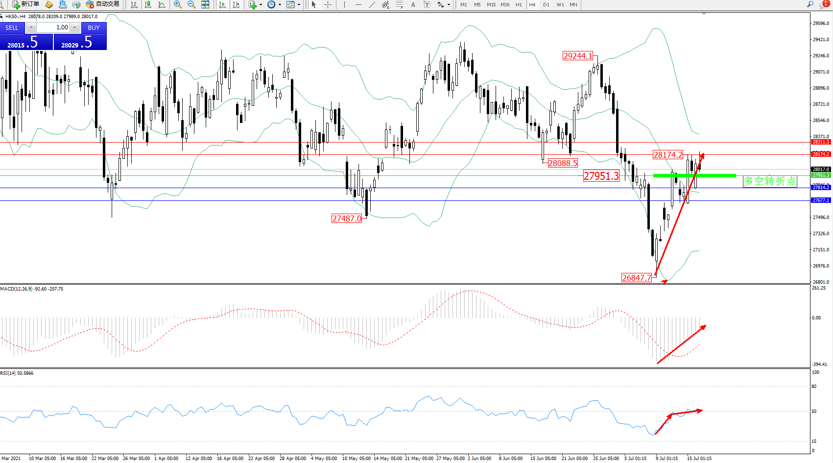恒指HK50 ——4小时K线图显示: