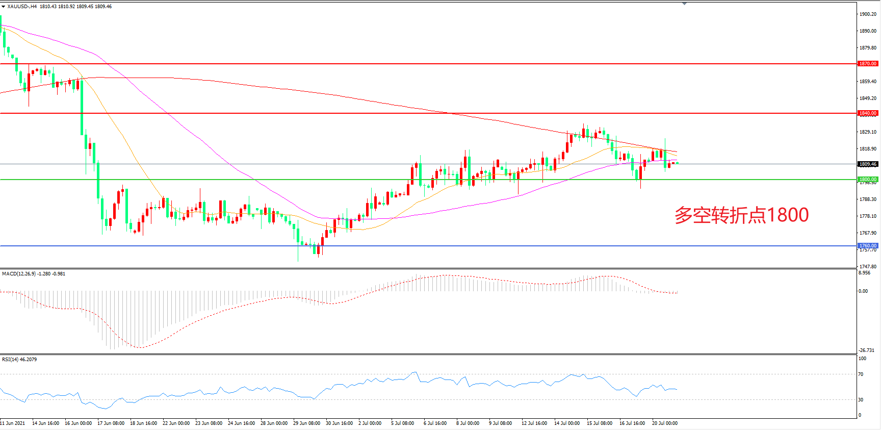 交易策略: 在1800.00之上看涨,目标1840.00 1870.00