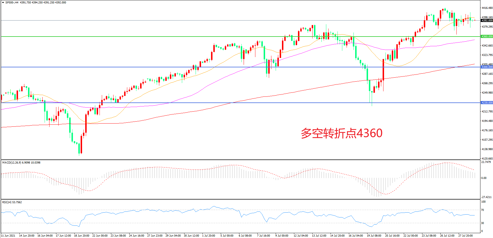 周三(7月28日),美联储公布了利率决议及政策声明,将基准利率维持在0%-0.25%不变,符合市场预期,宽松的货币环境推动标普反弹,最终收报4393.25点。从目前来看,在已经公布季度业绩的标普500指数成份股公司中,89%的收益超过了预期,86%的收入超过了预期,强劲的财报表现可能推动美股继续上行。
