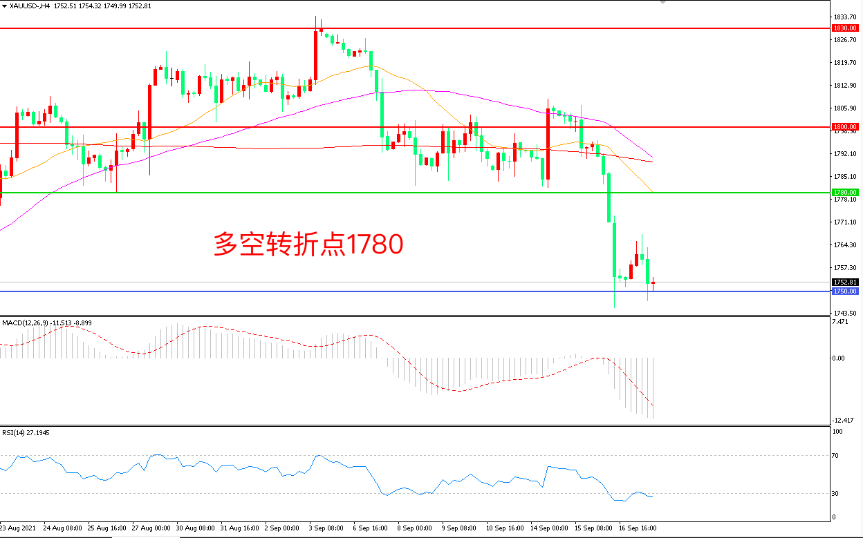 交易策略:在1780.00之下看跌,目标1750.00 1720.00