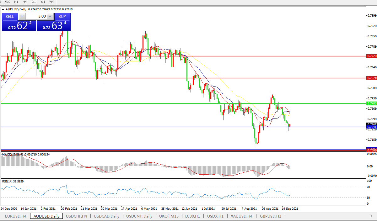 交易策略:0.7400下方看跌,目标0.7240、0.7080