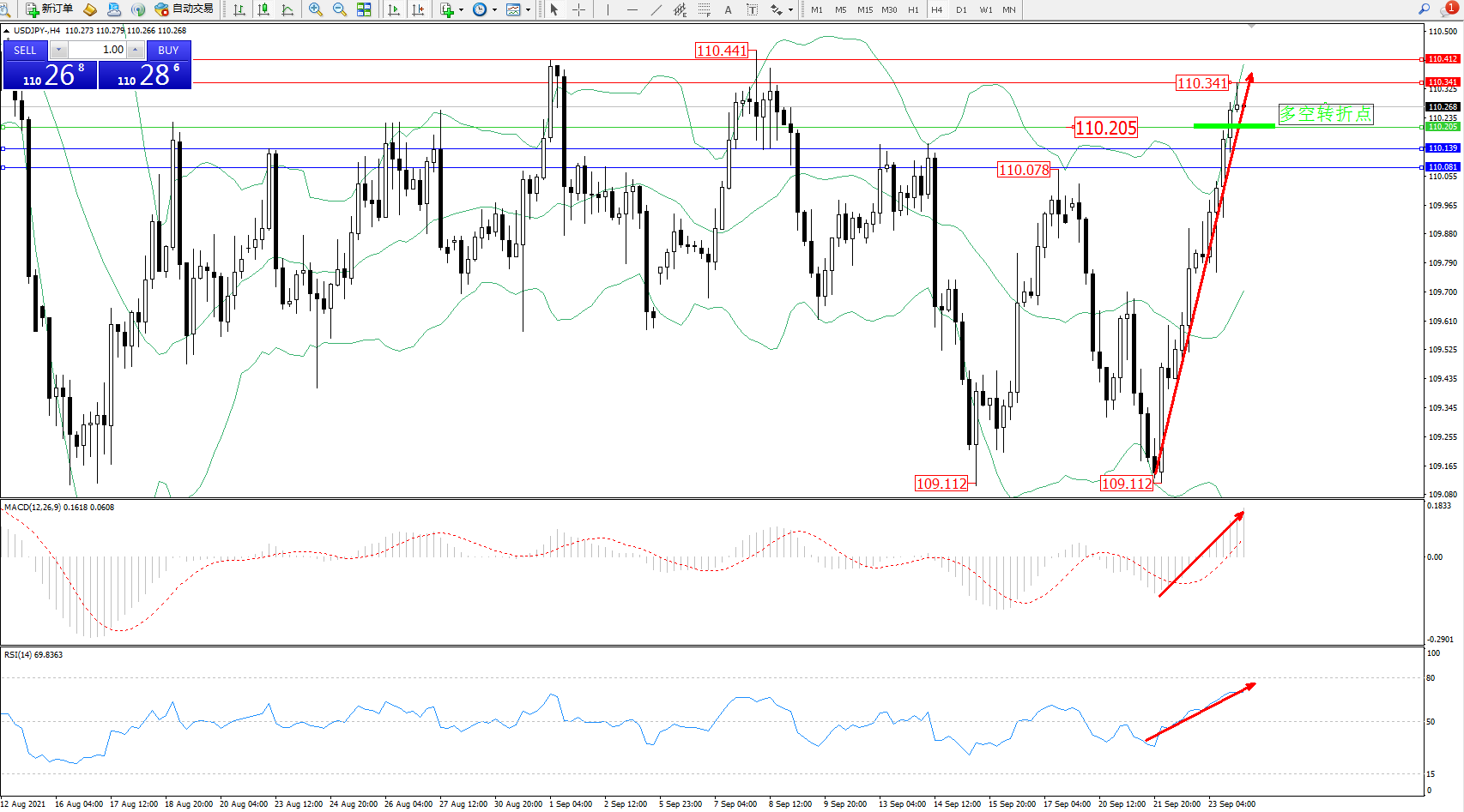 多空转折点:110.205