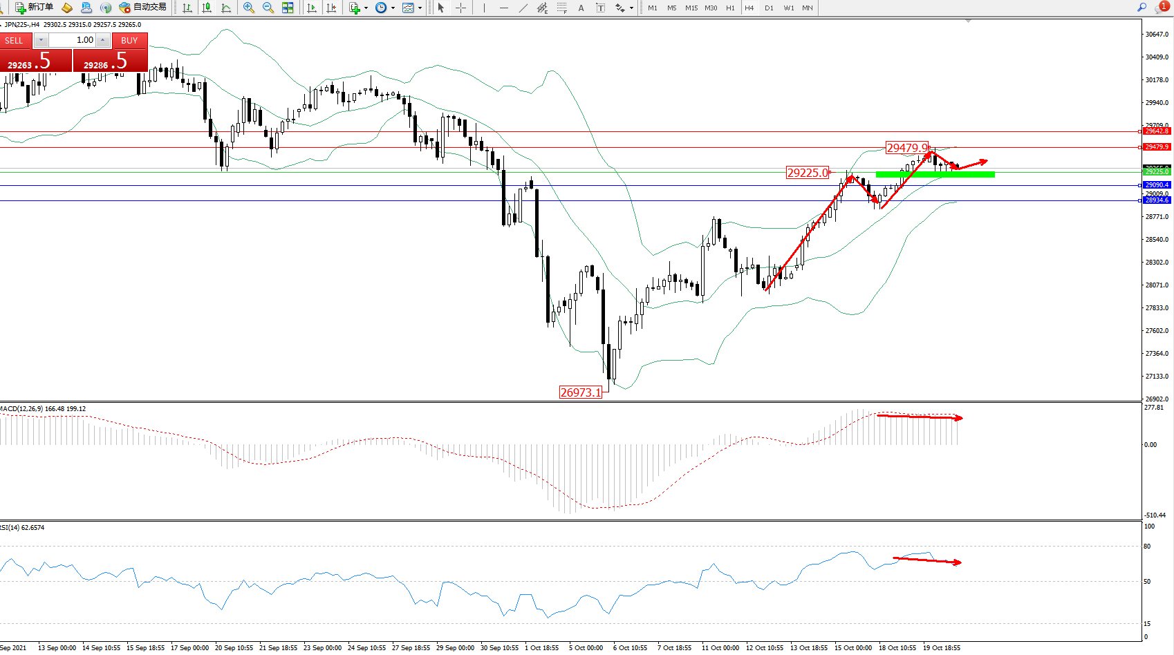 日经指数JPN225——4小时K线图显示: