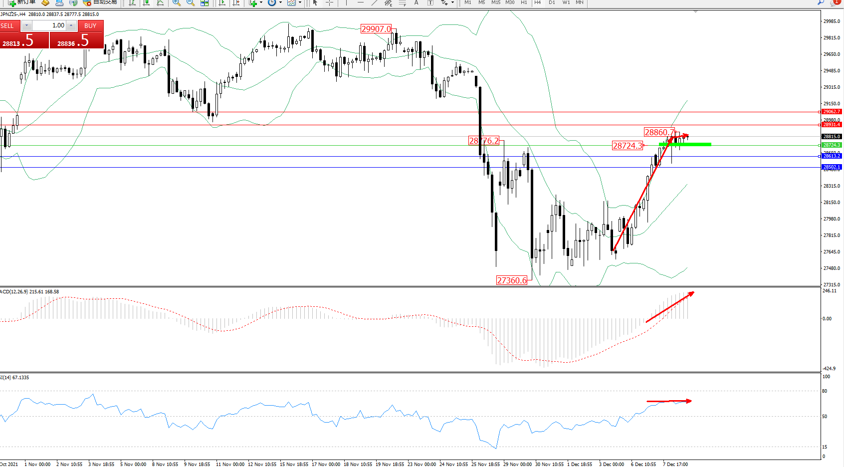 日经225指数12月8日(周三)收盘上涨392.90点,涨幅1.38%,报28848.50点。日本央行副行长雨宫正佳:在决定处置日本央行疫情纾困计划的时机上必须保持灵活,日本央行将在12月或2022年1月决定是否延长新冠大流行救助计划的最后期限,将灵活支持企业融资,奥密克戎变体病毒升高了日本经济前景的不确定性,我们的基本观点是,日本经济将在明年上半年显示出更清晰的复苏,尚未决定是否在明年3月的最后期限结束或扩大大疫情救援计划,将密切关注日本央行短观数据和其他关于企业资金的数据,如果疫情救济措施操作结束,日本的基础货币增长可能会放缓,有可能根据金融状况审查并加强日本央行的新冠大流行纾困计划。