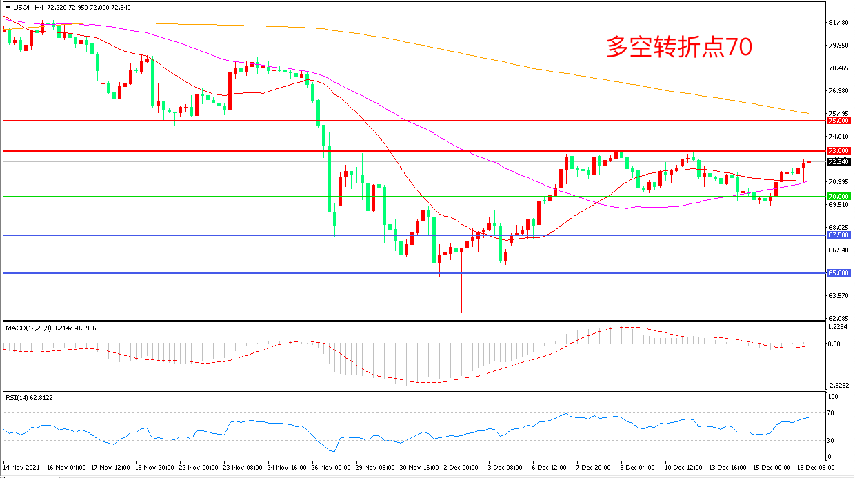交易策略:在70.00之上看涨,目标73.00        75.00